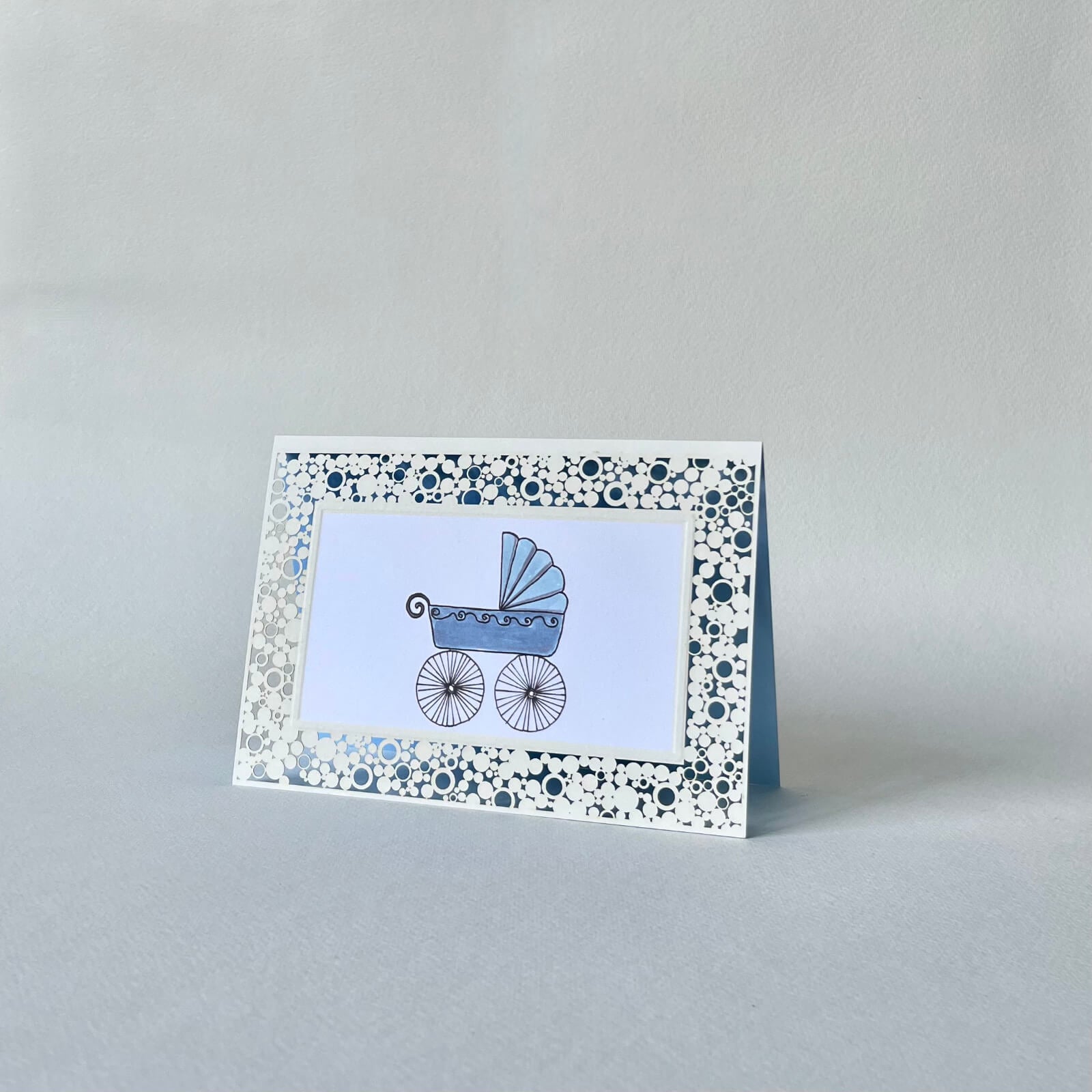 Die Karten sind im Querformat und werden mit einem hellblauen Kuvert geliefert.