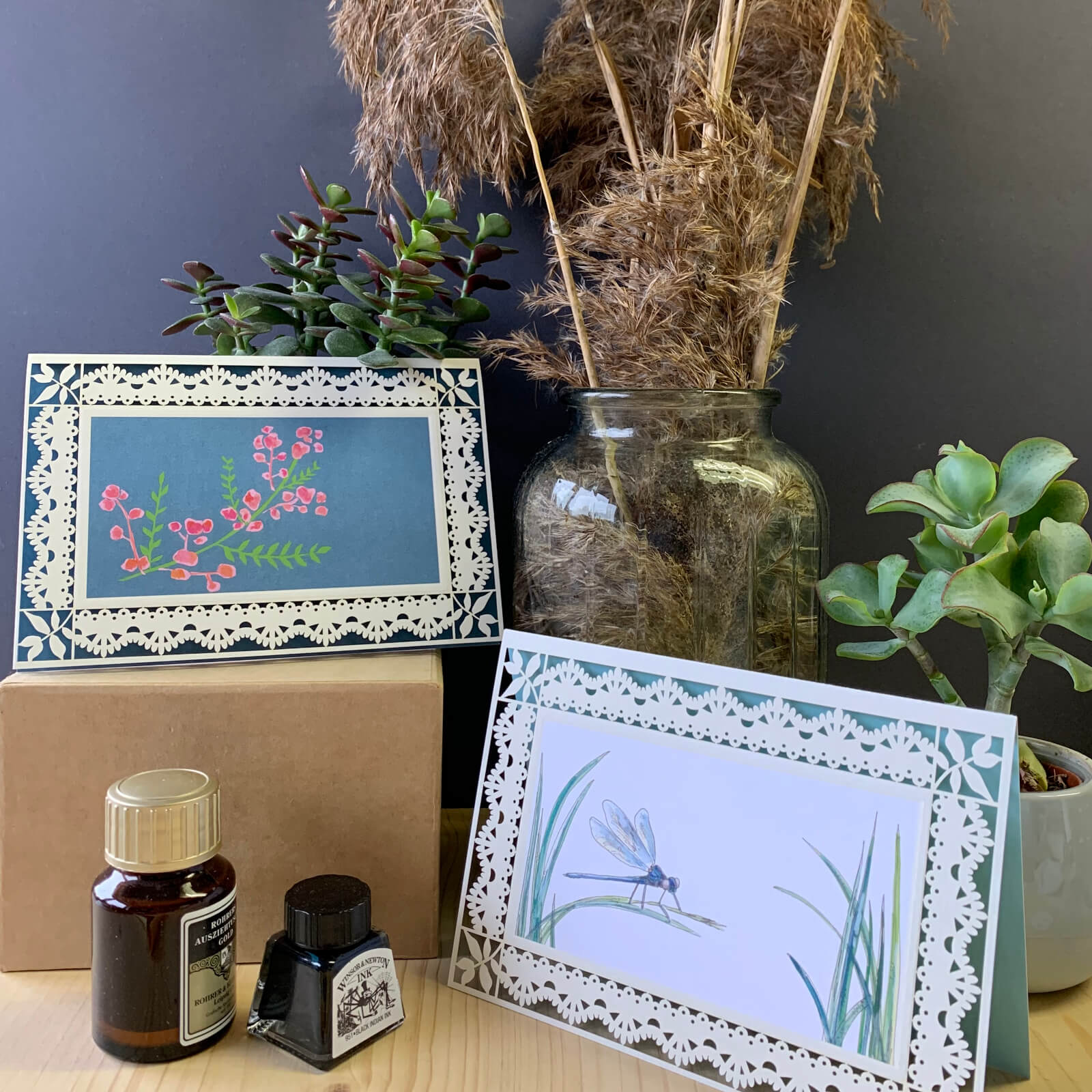 Die Karten aus der Klappkartenserie classic Karten sind ein besonders hochwertiges Kartengeschenk. Die Bilder sind liebevoll von Hand mit Tusche und Aquarellfarben illustriert. Geziert werden die Motive mit einer filigran ausgestanzten Bordüre. Die Innenseite ist komplett farbig bedruckt wodurch ein eleganter Passepartout-Charakter entsteht.