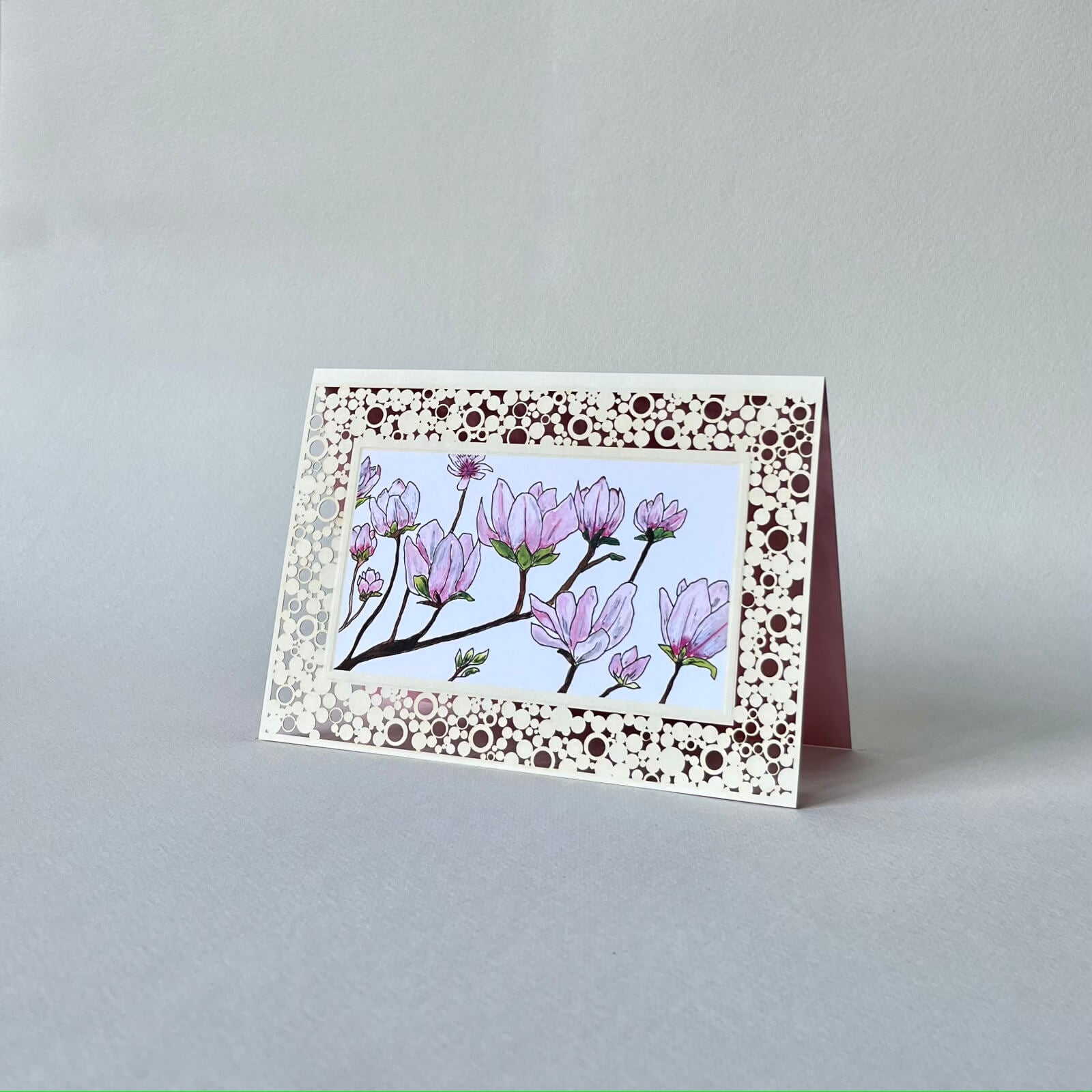 Die Karten sind im Querformat und werden mit einem cremefarbenen Kuvert geliefert.