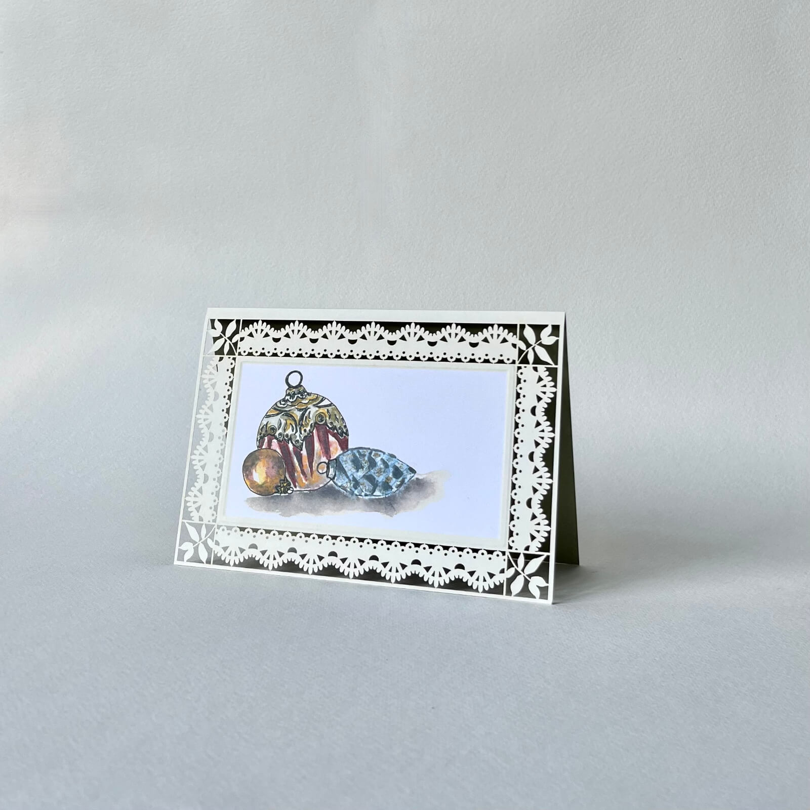 Klappkarte Weihnachtskugeln nostalgisch