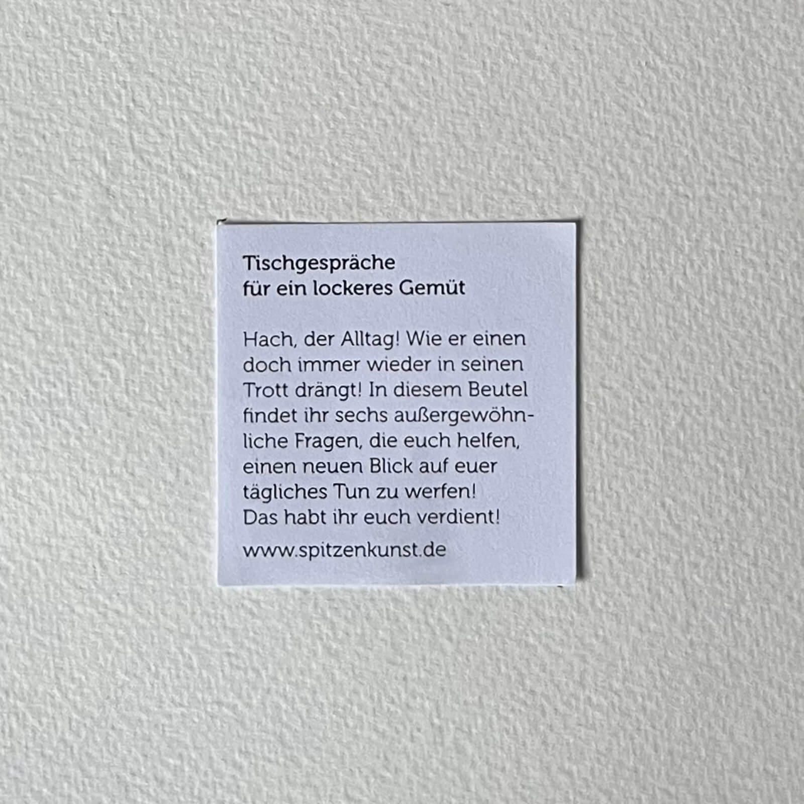 Jeder kennt es, wenn die Tücken und der Trott des Alltags schwer fallen. In diesem Beutel findet ihr sechs inspirierende Fragen, die euch helfen sollen, einen neuen Blick auf euer tägliches Tun zu werfen.